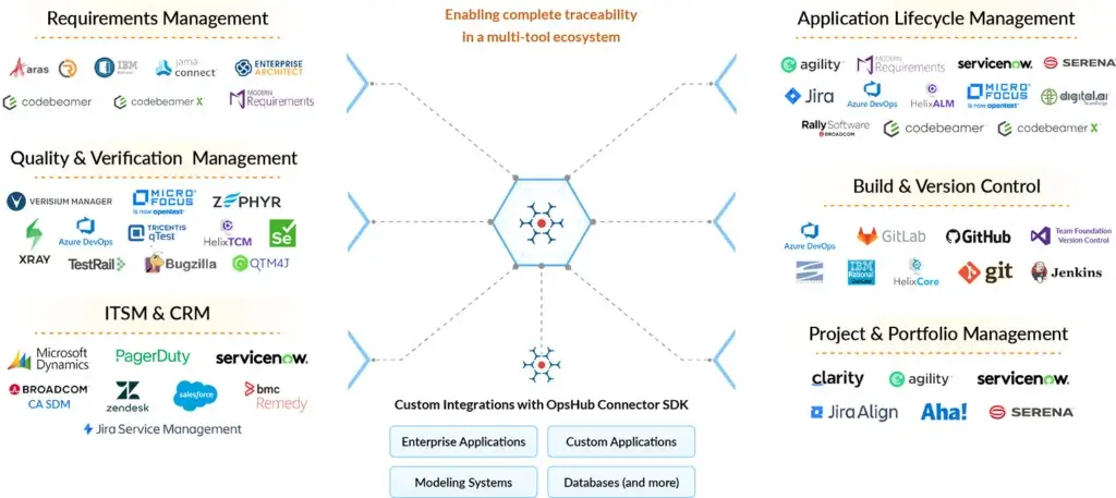 OpsHub supports Enterprise Architect integration with 60+ ALM, DevOps, ITSM, & CRM systems